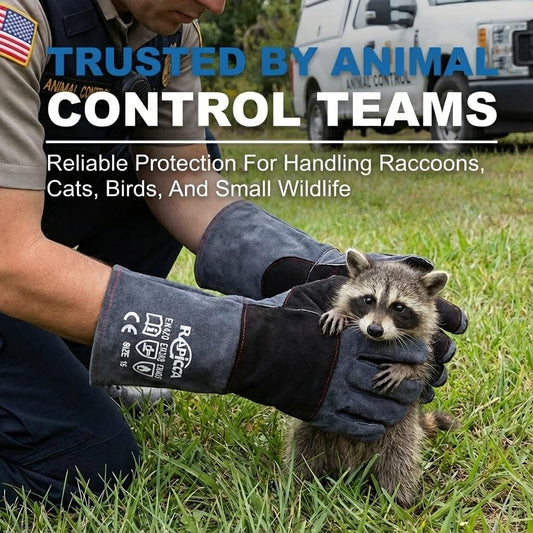 Animal Handling Gloves Bite Proof Reinforced Leather Padding Dog,Cat Scratch,Bird Handling Falcon Gloves Grabbing,Reptile Squirrel Snake Bite 16In/40Cm